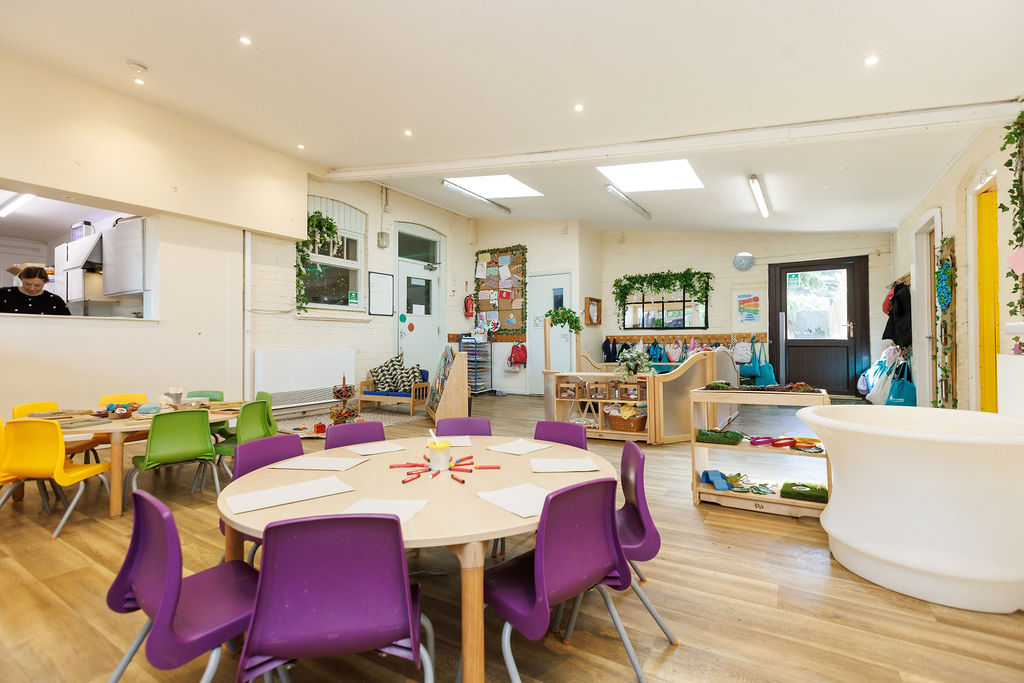 Upstairs, our baby room offers a safe and comforting space for up to 12 babies each day. A dedicated team of qualified practitioners provides attentive care, ensuring that every baby receives the nurturing support they need throughout the week.